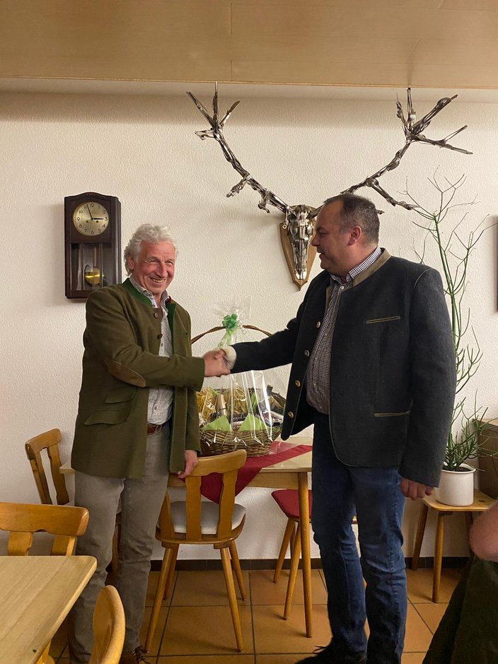 Im Februar durfte unser ehemaliger stv. Kreisjägermeister einen besonderen, halbrunden Geburtstag feiern. Viele Jahre leitete Dieter Straub zudem die Geschicke in seinem Hegering Rosenfeld. Und so ließen es sich seine Jagdfreunde nicht nehmen, Dieter beim letzten Hegeringabend in Rosenfeld herzlich zu gratulieren. HRL Jens Steinkopf überreichte seinem Vorgänger einen Geschenkkorb. Damit bedankte er sich bei Dieter Straub für dessen langjähriges Engagement im Hegering Rosenfeld. Und außerdem sollten die Glückwünsche dem Jubilar den baldigen Eintritt in den Unruhestand erleichtern.