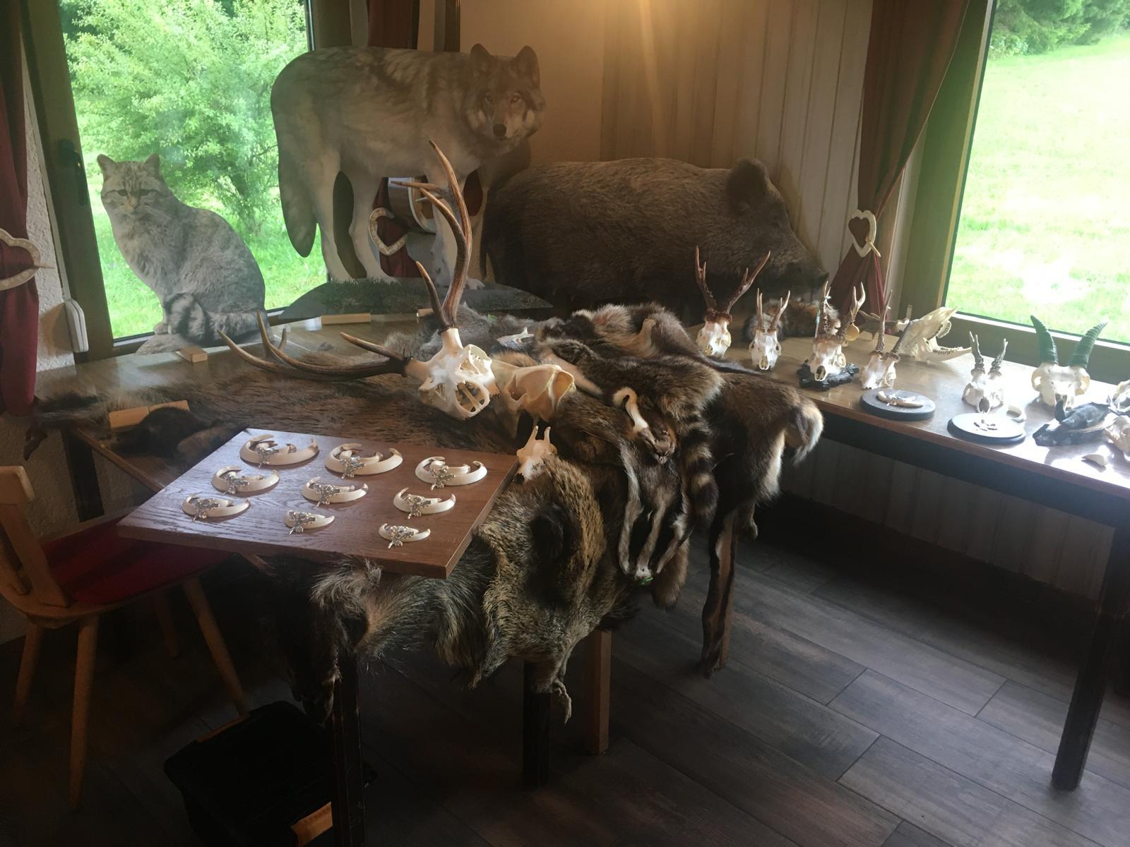 Stefan Hauser, CDU-Vorstandsvice, hatte Jäger Michael Kupresak für diese Veranstaltung gewinnen können. Die Beiden hatten sich im Vorfeld einiges einfallen lassen, um den Kindern ein buntes Programm bieten zu können. Am Samstag, 2. August stand der Lernort-Natur-Anhänger der Jägervereinigung Zollernalbkreis bereit, bestückt mit naturgetreuen Tieraufstellern unserer heimischen Wildtiere, mit Präparaten, Decken und Schwarten, wie man das Fellkleid beim Wild nennt. Leider spielte das Wetter nicht mit, sodass man mit den 24 Kindern das Treffen in die Schihütte verlegte. Dort wurde die heimische Tierwelt spielerisch entdeckt und alle konnten ihr Wissen bei einem Jägerquiz unter Beweis stellen. Kreativität war gefragt beim Ausmalen von Wildtier-Bildern. Großen Anklang fanden die Tierspur-Stempel, mit denen eifrig in Trockenton gearbeitet wurde. Die Tonspuren werden die Kinder noch lange an diesen ereignisreichen Tag erinnern.