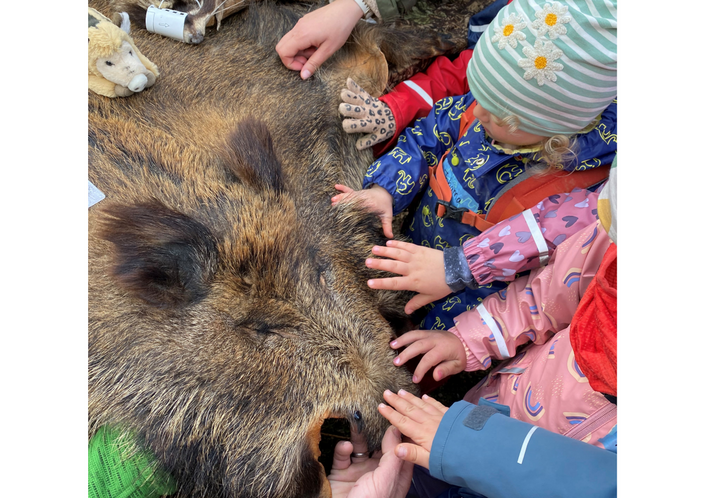 „Die Kinder sollen die Natur mit allen Sinnen erleben und verstehen", das ist dem Jäger Felix Ambacher ein echtes Herzensanliegen und dank seines ehrenamtlichen Engagements konnte er den Kindern den Wald als Erlebnisraum darstellen. Er traf auf offene Ohren, große Kinderaugen und unendliche Fragen aus Kindermund, die er mit Geduld und Begeisterung beantwortete.